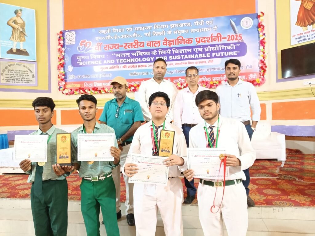रांची/पलामू। पलामू जिले ने एक बार फिर विज्ञान के क्षेत्र में अपनी प्रतिभा का परचम लहराया है। झारखंड सरकार के स्कूली शिक्षा एवं साक्षरता विभाग की ओर से रांची के जिला स्कूल में आयोजित 52वीं राज्य स्तरीय बाल वैज्ञानिक प्रदर्शनी में पलामू के दो छात्रों ने शानदार प्रदर्शन किया और राष्ट्रीय स्तर के लिए चयनित हुए।